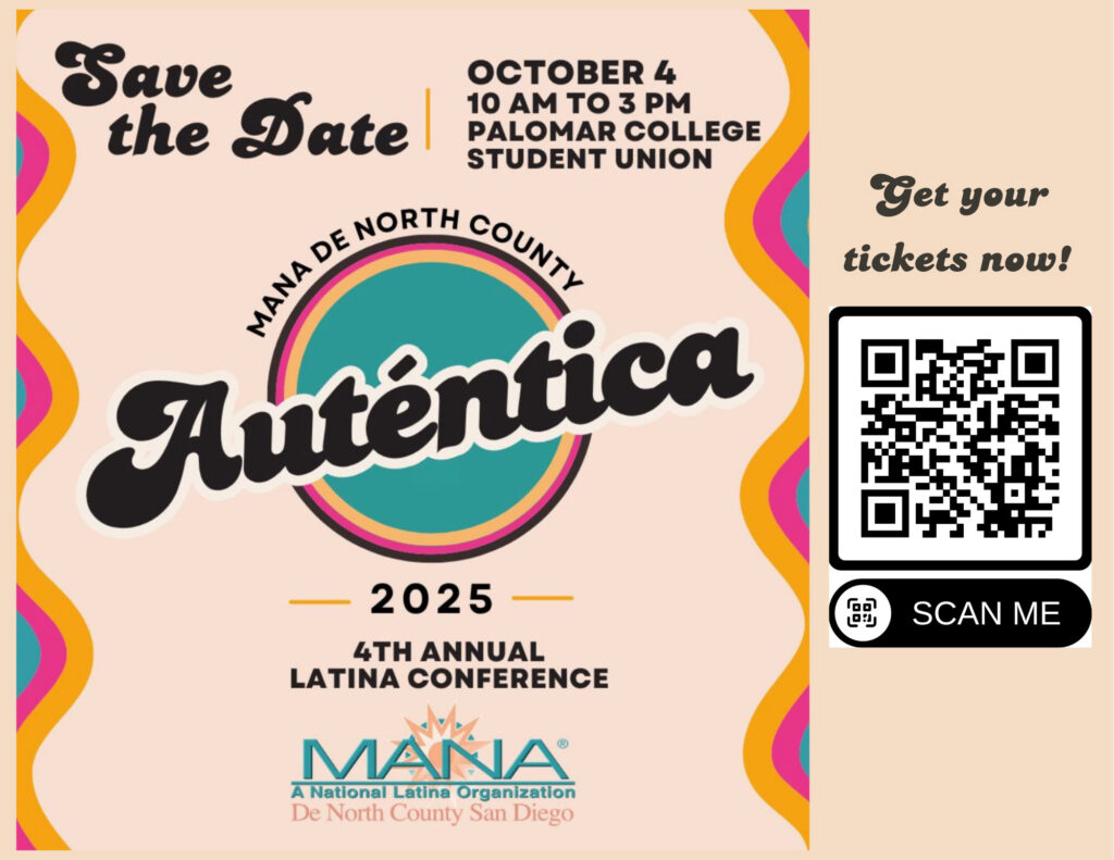 Mark your calendars! On October 4, 2025, from 10 AM to 3 PM, MANA de North County invites you to the 4th Annual Latina Conference: Auténtica at the Palomar College Student Union. This year’s theme, Auténtica, celebrates the unity, collaboration, and resilience that thrives within our Latina community. It’s more than just a conference—it’s a […]